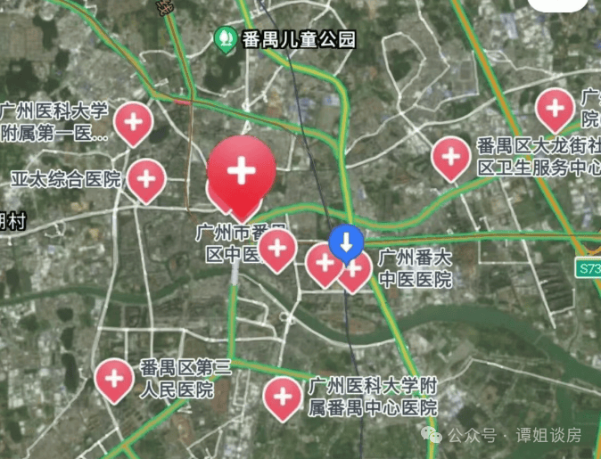 3公里范围内有广州市番禺区中心医院、何贤纪念医院、广州市番禺中医院。