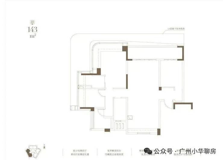 其中,约133㎡北侧看白云山,约143㎡西南向,约177㎡东南向。