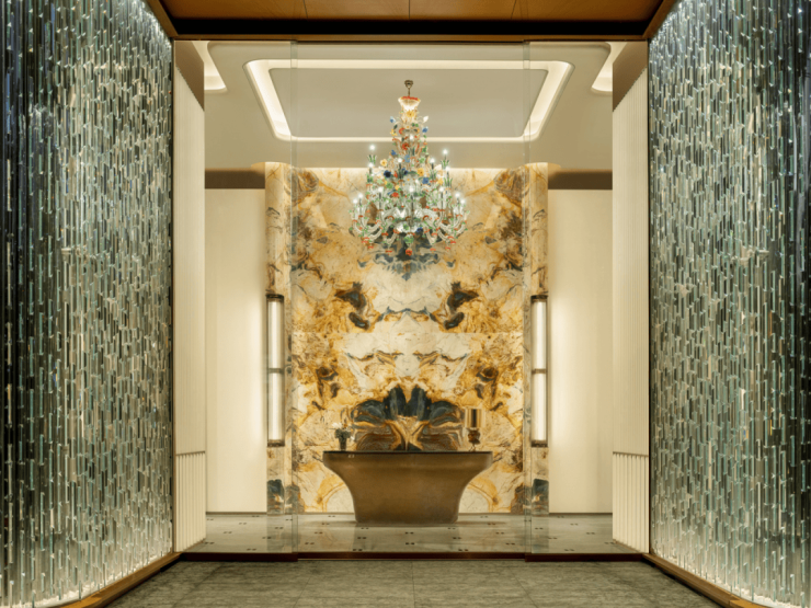 再加上5万颗水晶手工镶嵌的璀璨天幕、14.5米整石雕琢的龙鳞景墙、12万片宝石级玻璃构建的穹顶……这里处处都是艺术家们的巧思。