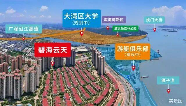 碧海云天位于南部滨海新城,周边商业、中小学、医院、森林公园、游艇俱乐部(建设中)等升级规划将一应俱全,畅享游艇码头、风情酒吧街、观光长廊等高端生活;一桥之隔的威远岛,规划约100亿湾区大学在建,预计2030年招生约1万人,是飞速培养尖端人文科创的摇篮。(旨在提供相关信息,具体以政府规划为准)