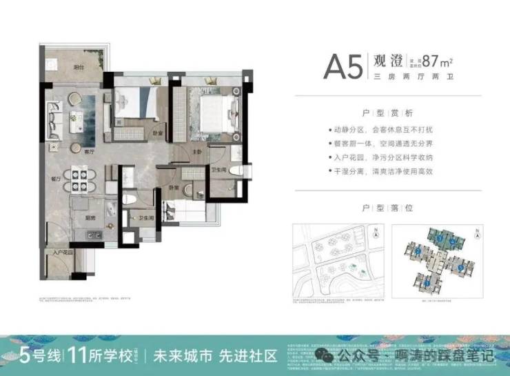 2⃣️建面约88㎡三房两卫(珍稀31套!)