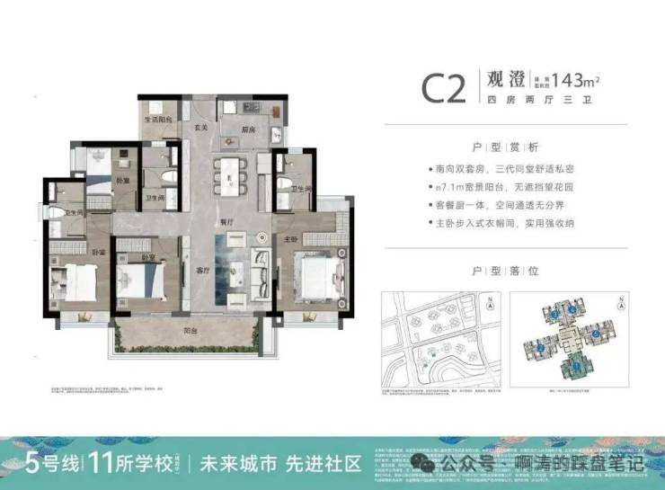 新组团的产品根据客户需求不断优化升级,在阅海和观澄基础上进行产品迭代。户户朝南,通风采光效果极佳,东望绿核公园,西南向视野无遮挡,使用率非常高,面积段75-142㎡,加上赠送面积,最高使用率95%以上
