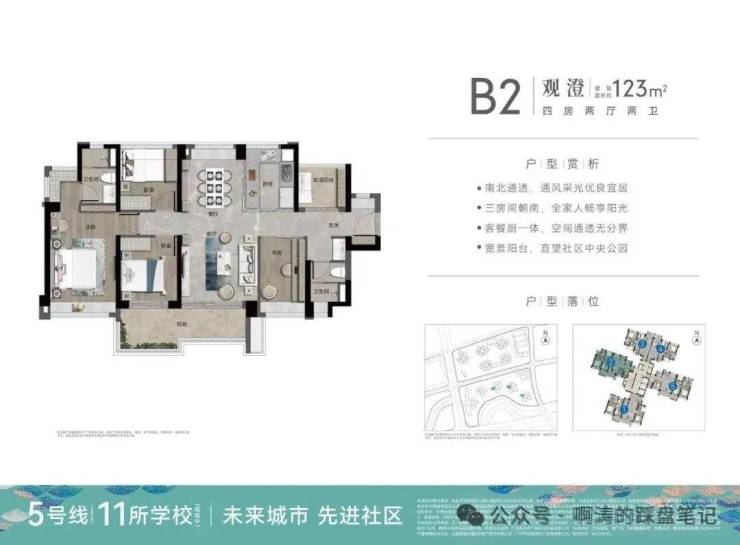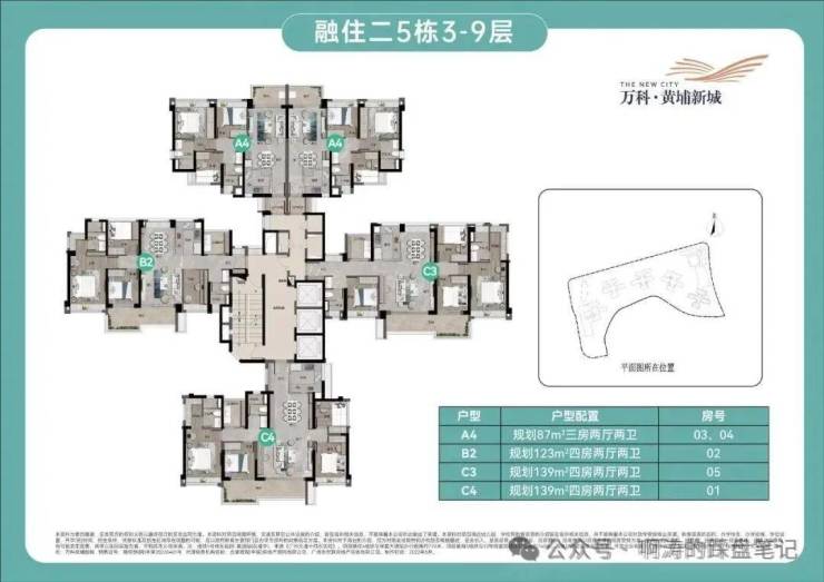 约123㎡南向4房,约143㎡南向4房,约93㎡北向3房。87方北向3房