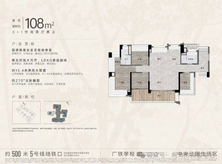 总裁的房子!真3卫!可做双主套,百变X空间(书房/健身房自由),6米巨厅+双面采光,推窗即绿核公园无敌视野!