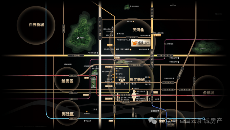 3.地理位置的优越性,白云和天河的交界,能享受到白云天河两大核心区域的成熟配套。