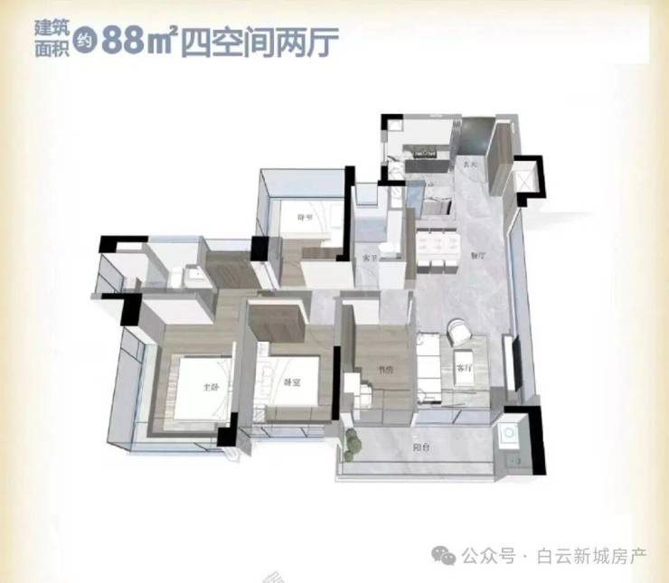 1. 88㎡,四房二卫户型⛪越秀云悦售楼处电话:4008736605☎开发商已认证🌇🌇