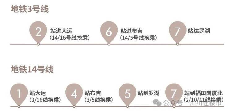 14号线:距离最近坳背站,5站罗湖、7站福田,换乘11号线,4站可达后海;