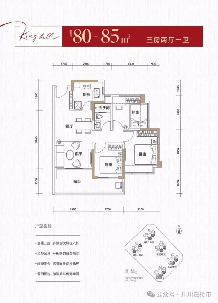 产品面积:约80-119㎡3-4房