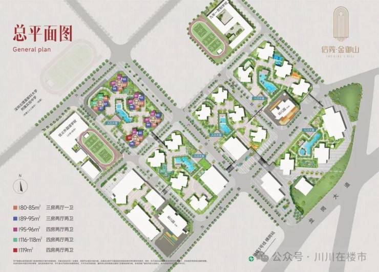 片区唯一建面超百万平的超级大盘,总建面约115万㎡,规划业态涵盖高端住宅、总部办公、时尚商业、国际教育等,打造“1核1厅2轴3庭院4广场”的大城体系。