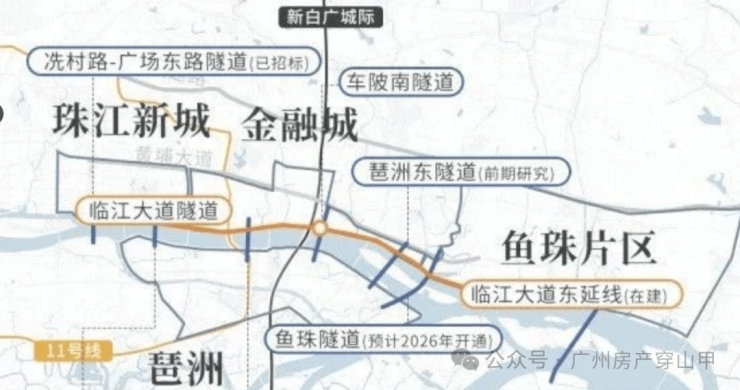 与此同时,新白广城际也将在今年开通,琶洲和金融城的距离将缩短成一个站。其实,去年开通的11号线,已经实现了这一点。未来,随着琶洲与鱼珠隧道,琶洲与珠江新城隧道的开通,一江两岸将被彻底缝合。