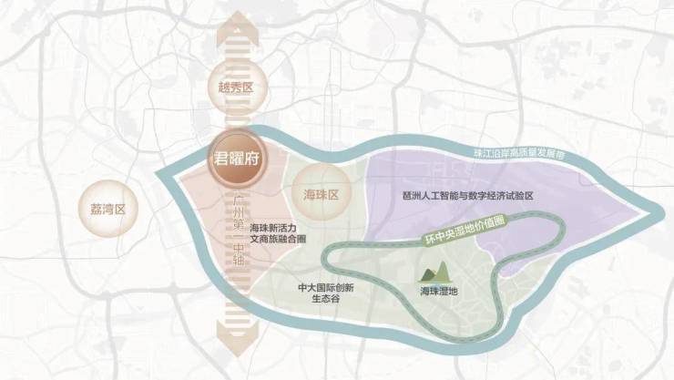 地处广州第一中轴南拓首站,雄踞海珠桥头,择址千年中轴正脉与珠江水脉黄金交汇点,立足“滨江岭南文化商圈”与“海珠新活力文商旅融合圈”,承接越秀烟火与海珠未来。