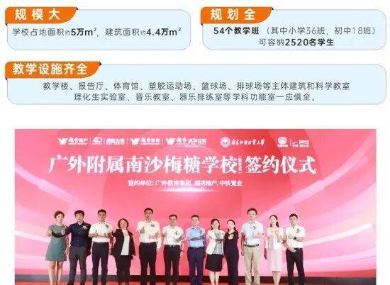 2023年9月28日,中铁置业(广州)有限公司携手广外教育集团共建广外附属南沙梅糖学校,其距离中铁·阅江来仅约500米