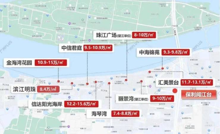 项目周边是珠江新岸公寓、丰盈居、滨江水恋等多个成熟小区,而且滨江东作为广州老牌高端生活区,生活氛围和配套也比较齐全。向西走150m就是柏丽广场,向南还有大江苑菜市场,生活上还是很便利。