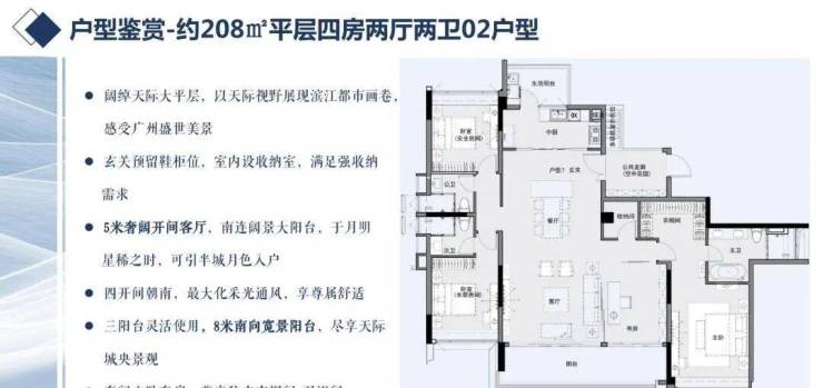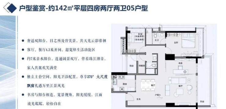 其中5-18层推120-143㎡四至五房,20-30层推220㎡大平层,整盘仅打造92套,主打都是改善类客群。项目与珠江直线距离约300米,东面有广州大道,视野比较开阔,预计东北面中高层户型可望江。