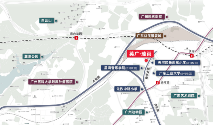 英广瑧尚便坐落于天河区先烈东横路 38 号,毗邻星海音乐学院与白云山,在历史与现代的交融中,为城市居住提供了新的选择。