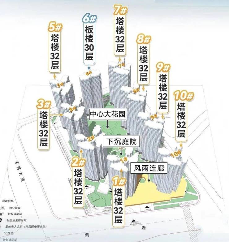 其中,#1栋、#10栋,#2栋,三梯6户;#3、#5、#7、#8、#9栋均为两梯5户。