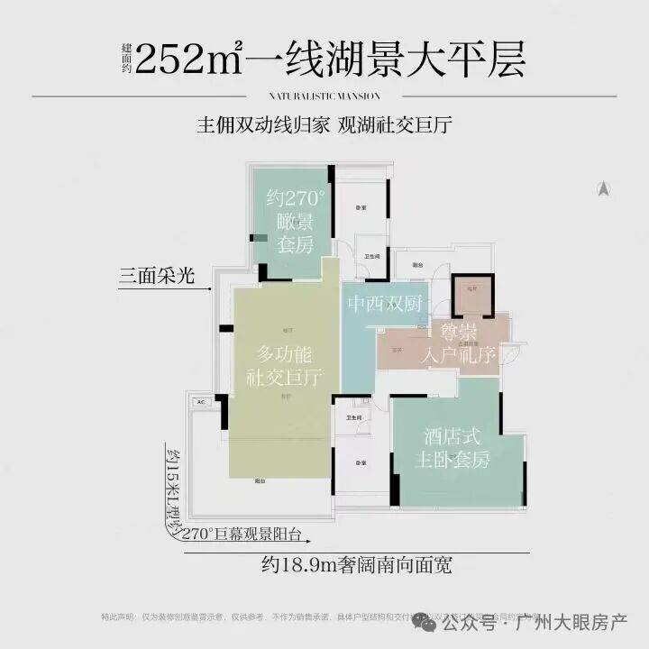 户型三开间朝南,为了获取更大面宽视野,项目还将全屋的窗地比做到38%。