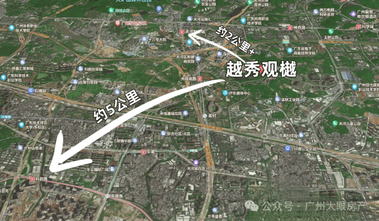 越秀观樾处于牛奶厂板块,也可以归属于天河智谷板块,隔壁就是产业聚集度很高的天河智慧城。
