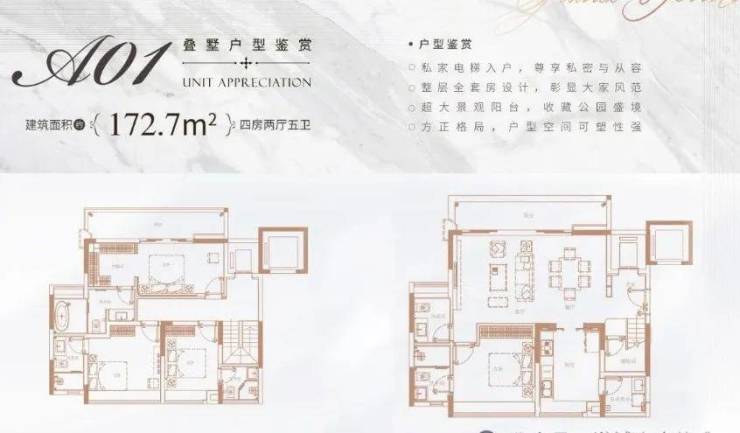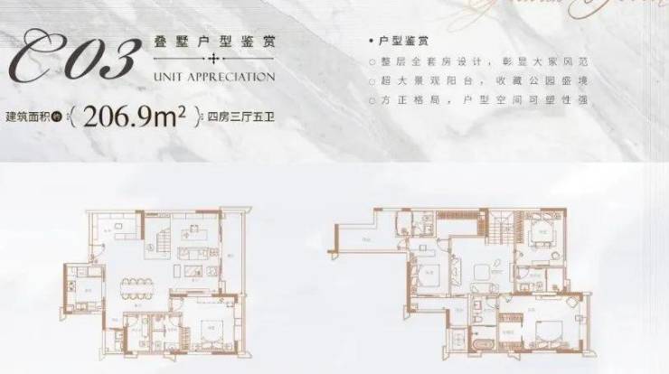 叠墅面积:约165-203㎡