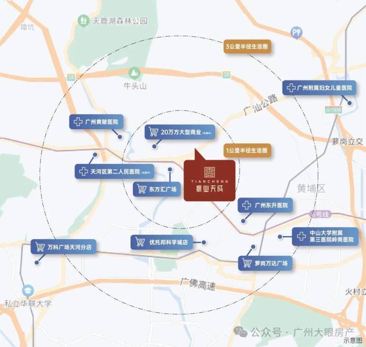 5所医院环绕,其中中山大学附属第三医院岭南医院、广东省第二中医院黄埔医院均属三甲医院,为业主健康保驾护航。