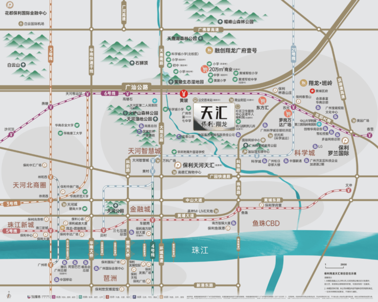 保利翔龙天汇位于广州市黄埔区广汕公路黄陂地铁站B出口(第一一七中学旁),是央企保利与广州翔龙集团联手打造的全龄生态宜居大盘。