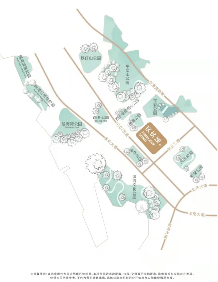 项目周边配备13大公园:流塘公园、宝安公园、碧海湾公园、西乡公园、灵芝公园、新安公园、滨海文化公园等,项目距离宝安公园直线距离1.5公里,距离流塘公园直线距离仅607米,出入公园环绕,宜居属性高。