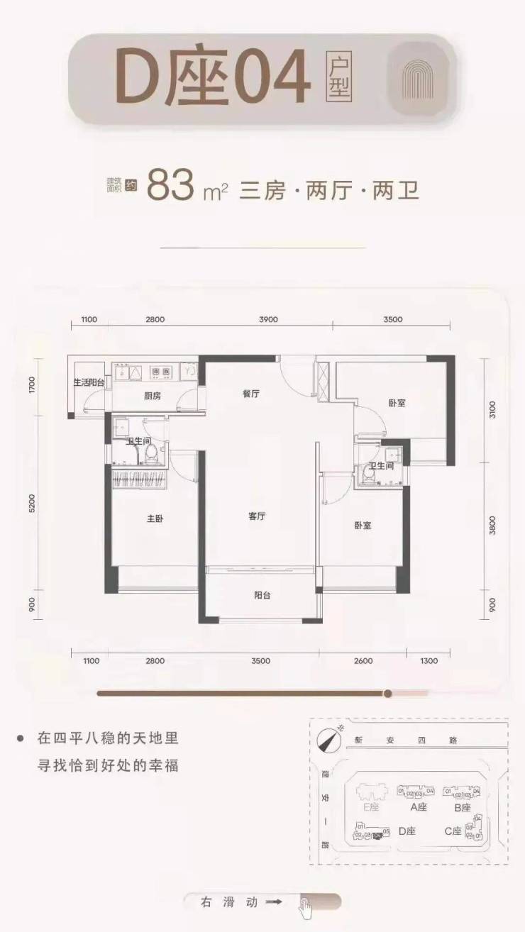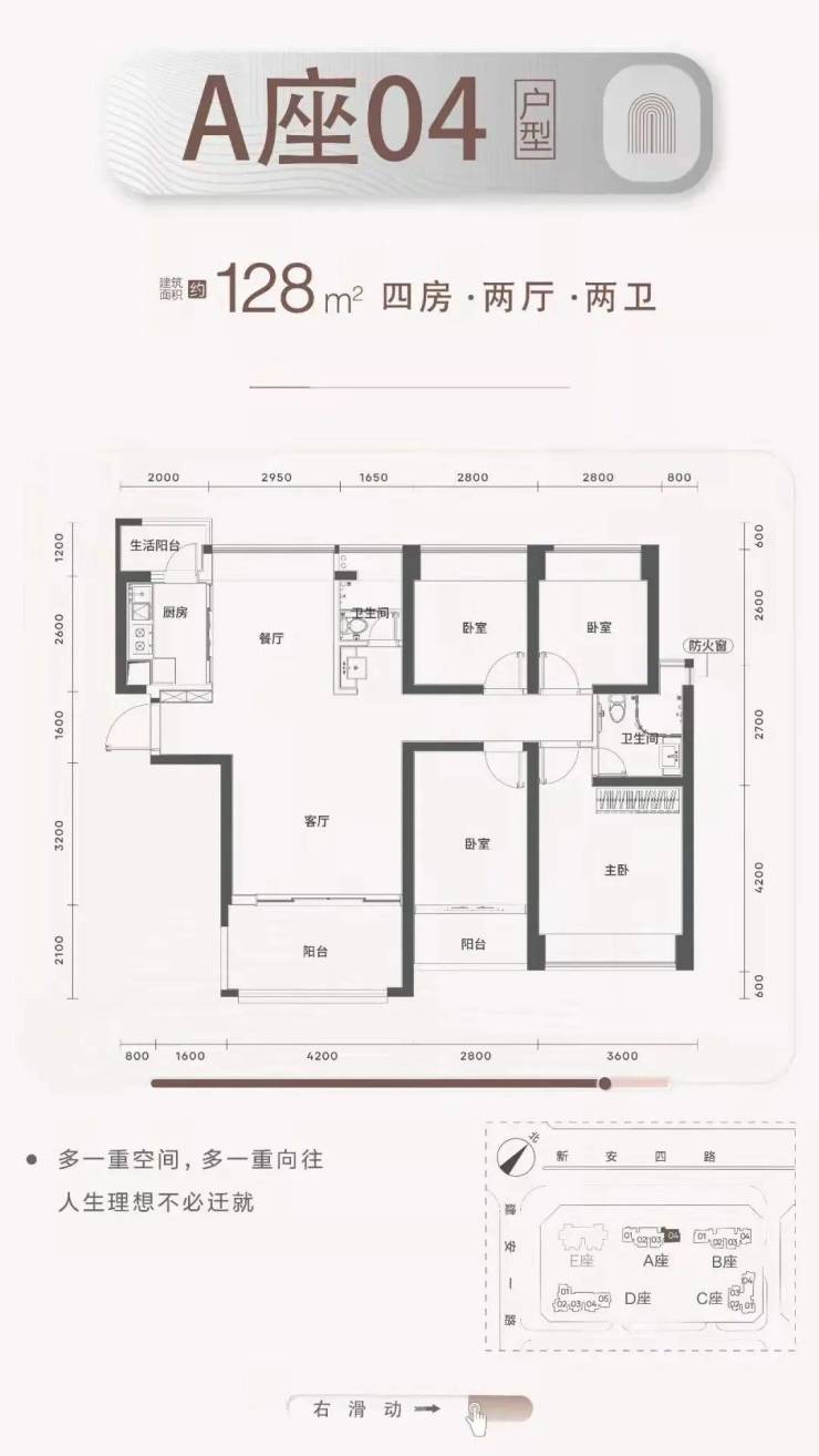 梯户比:A-C座2梯4户,D座2梯5户