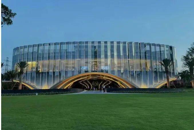 开放的营销中心,玻璃幕墙+弧形线条的售楼部,更像是个艺术藏馆,未来将成为业主们的滨江会所。