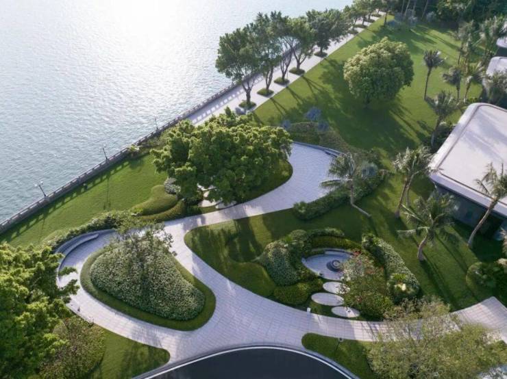 项目 12 栋住宅沿江岸线一字排开,设约 7 米抬高式盖板,打造三层归家动线,分隔江岸游客,保障小区私密与尊贵感。盖板之上是私密园林,之下为滨江商业带,再叠加 270° 环幕滨江会所、公共港湾公园,尽显都市质感。