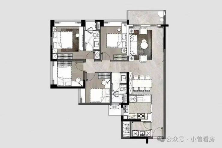 其中,125平方米的四房户型布局方正,空间利用率高,适合中小型家庭居住;