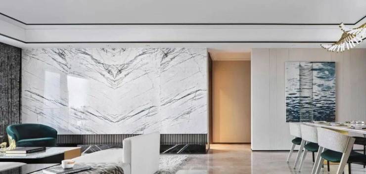 意大利是全球最负盛名的石材产地,意大利冰玉就是首席代表之一。其纹理较大,呈树枝状和片状分布在纯白底色之上,极具质感。