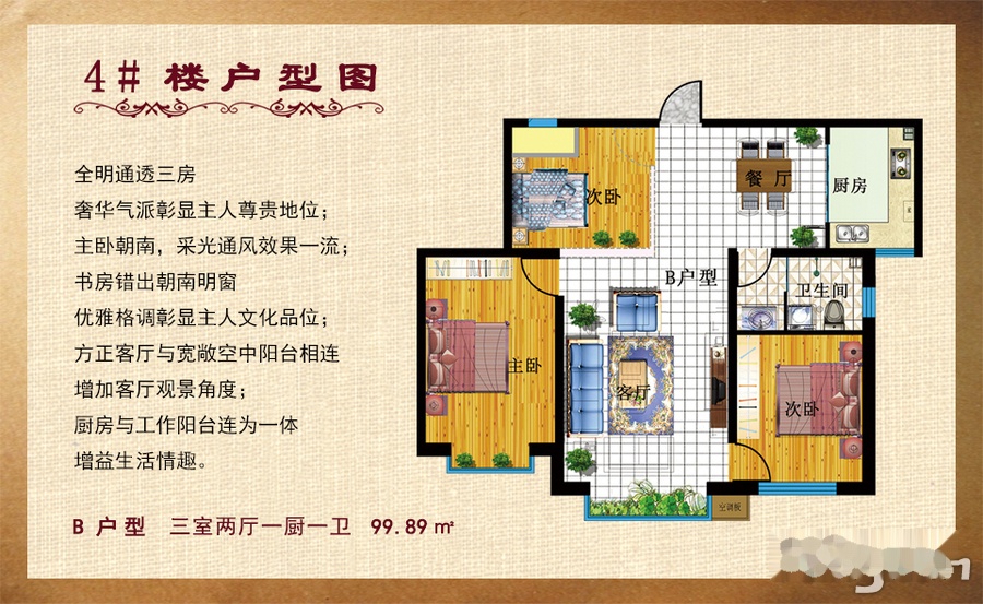 3室2厅1卫-4#B户型