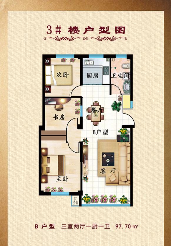 3室2厅1卫-3#B户型