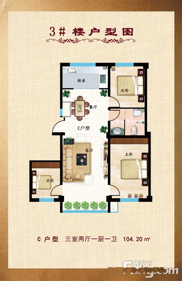 3室2厅1卫-3#C户型