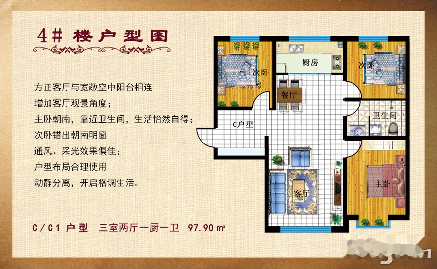 3室2厅1卫-4#C户型