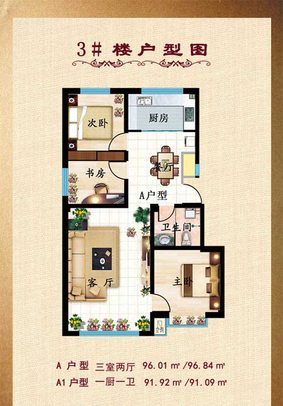 3室2厅1卫-3#A户型