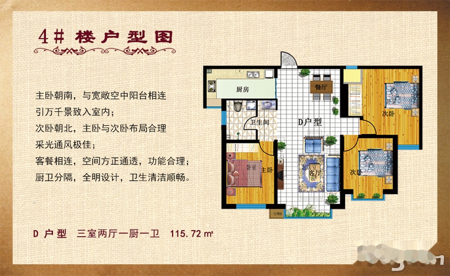 3室2厅1卫-4#D户型