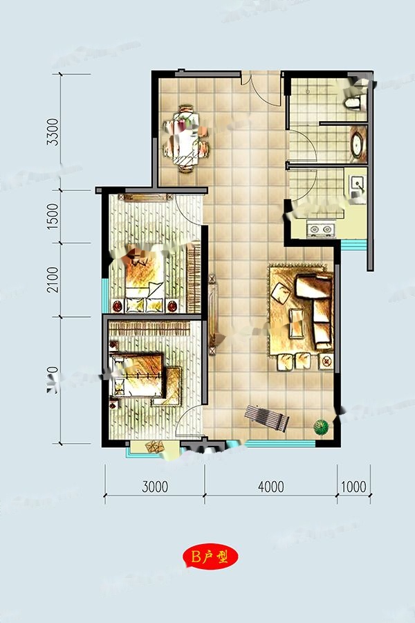 2室2厅1卫-B户型