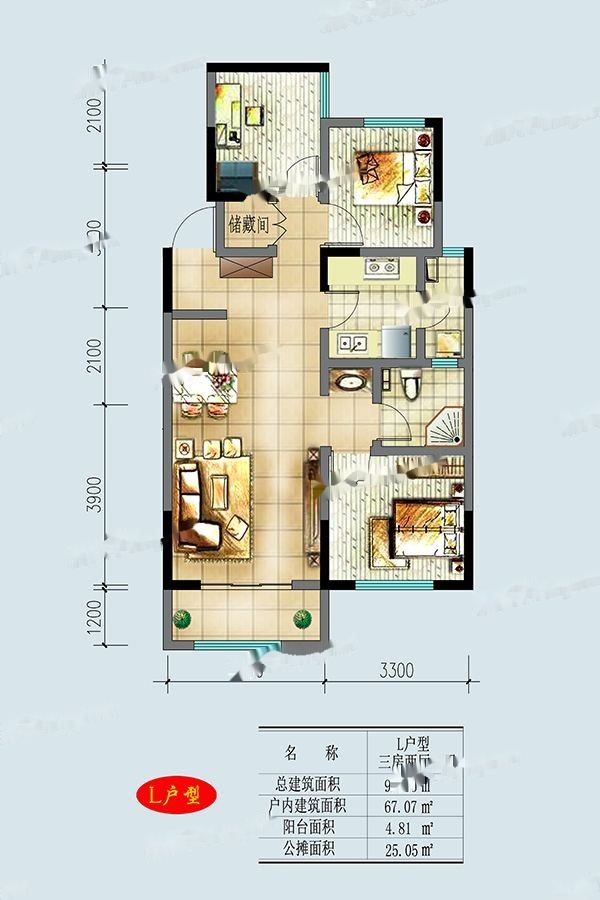 3室2厅1卫-L户型