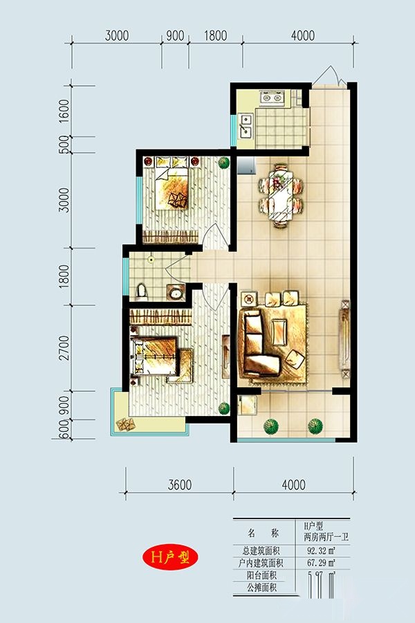 2室2厅1卫-H户型