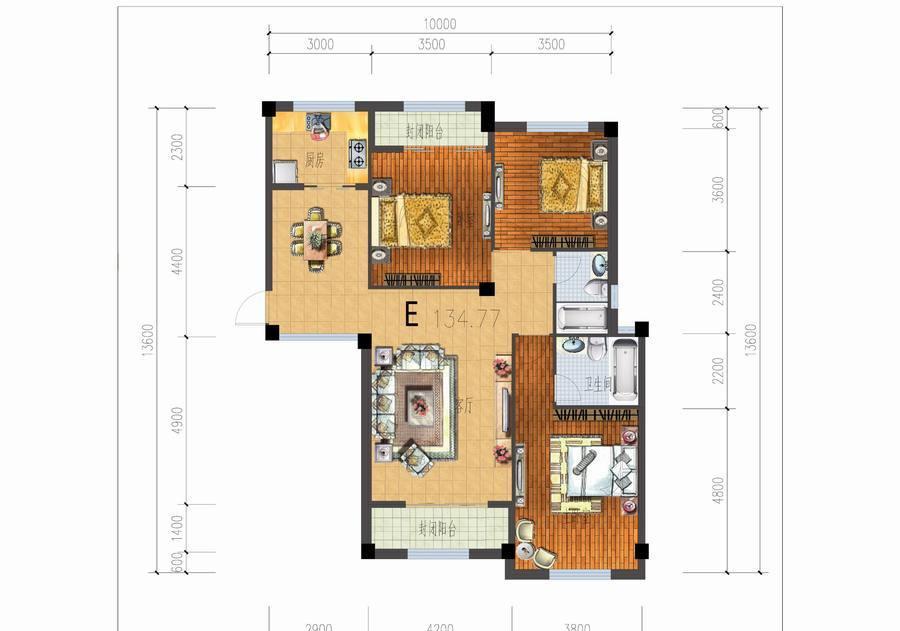 3室2厅2卫-E户型三室二厅二卫一厨