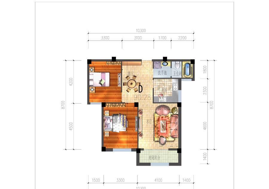 2室2厅2卫-D户型二室二厅二卫一厨