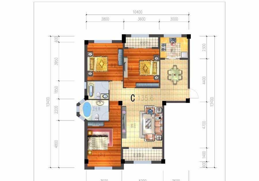 3室2厅2卫-C户型三室二厅二卫一厨