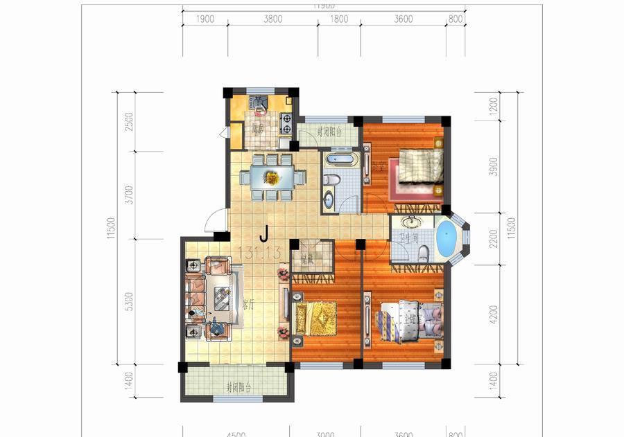3室2厅2卫-J户型三室二厅二卫一厨
