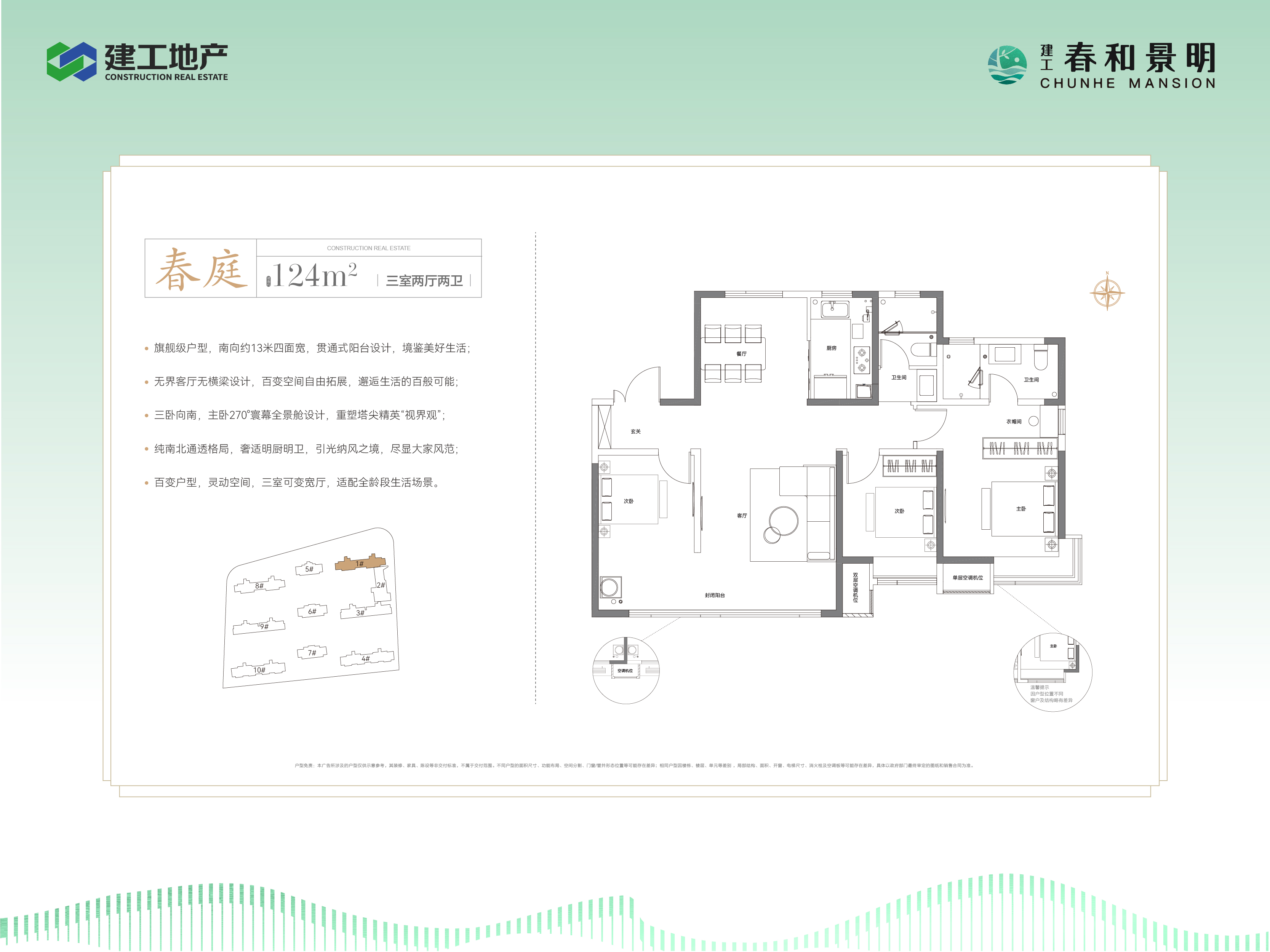 建工地产深谙幽静和舒适于雅贵人士生活的重要性,建工·春和景明,项目容积率2.0,规划设计8-10F低密洋房产品和18F小高层产品,以隐奢下沉庭院会所,恒温泳池及专享健身区,打造城市封面级奢适住区。8大景观园林设计,5重归家体验,营造静谧、从容、优雅的生活大境,革新美好生活想象,定鼎板块人居标杆。