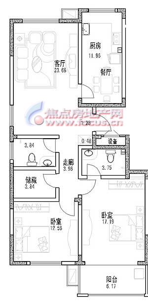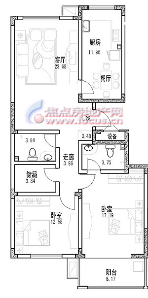 户型设计主要有三室两厅两卫、二室两厅两卫等多种户型,大部分多层带电梯。户内各功能空间均体现“以人为本”的设计理念,实现了动静分区、洁污分离,满足居住者的现代生活模式和生理、心理需求。