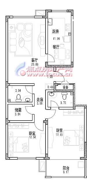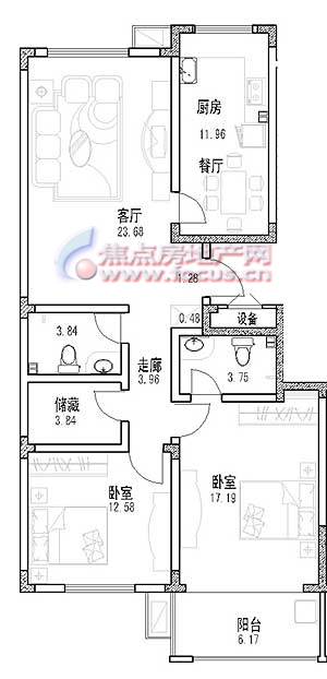 2室2厅2卫-华丰居3单元两室两厅两卫A