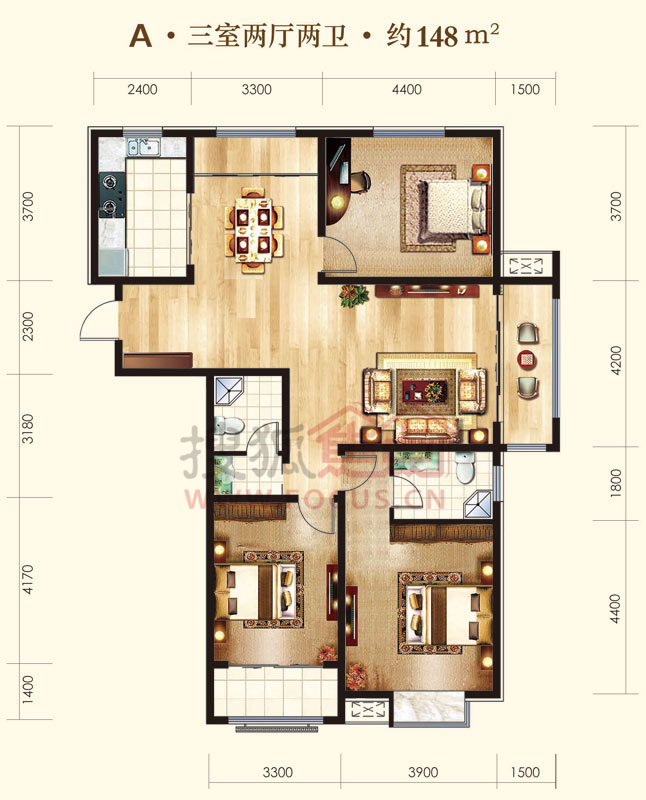 3室2厅2卫-148㎡3室2厅2卫A户型