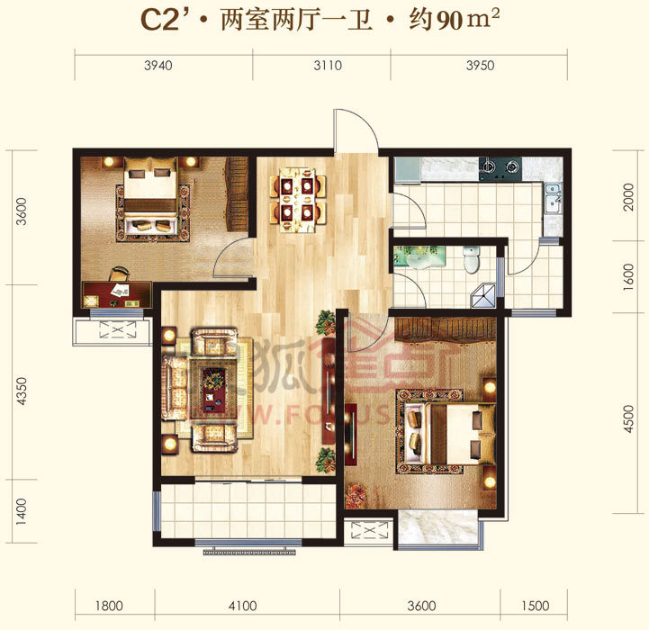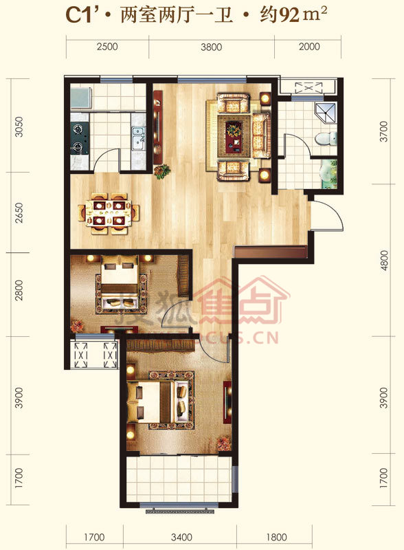 2室2厅1卫-92㎡2室2厅1卫C1‘户型