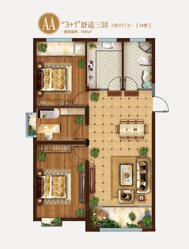 71万/套 建面89m²
